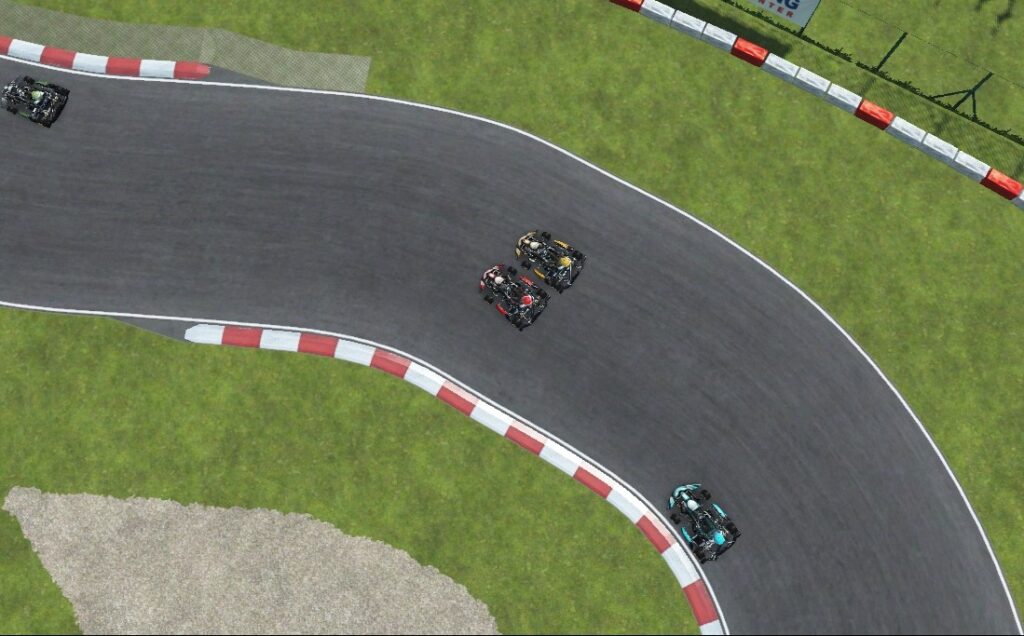 - Az előzést minden kerékkel a pályahatárok között maradva kell megoldani. Ebben a kanyarban a pálya belső határa a rázókő belső széle. Annak legalább egy kerékkel történő elhagyása kanyarlevágásnak minősül.