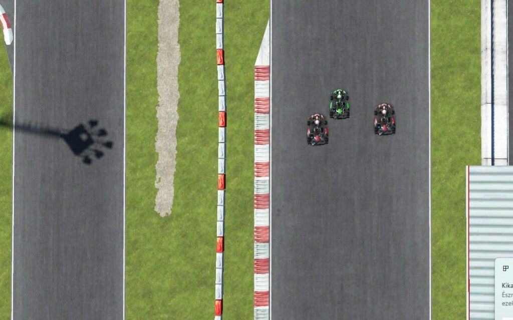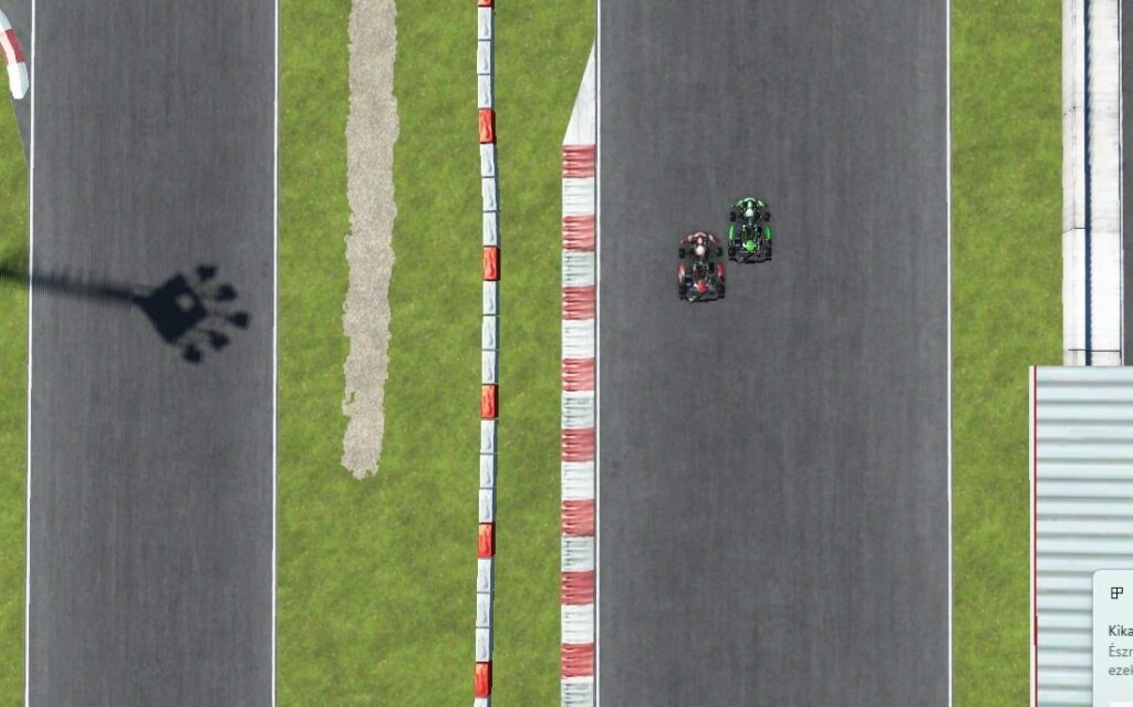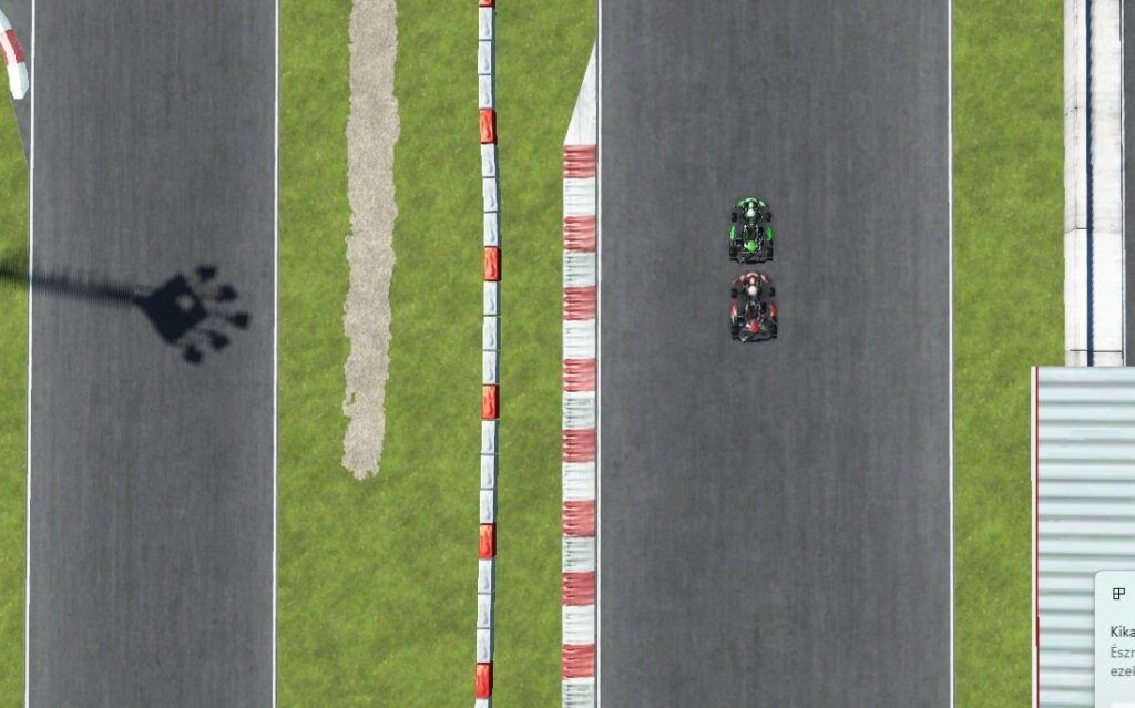 - A zöld gokart addig helyezkedhet ki a pálya szélére, ameddig semekkora részben nem ért be mellé a piros gokart.